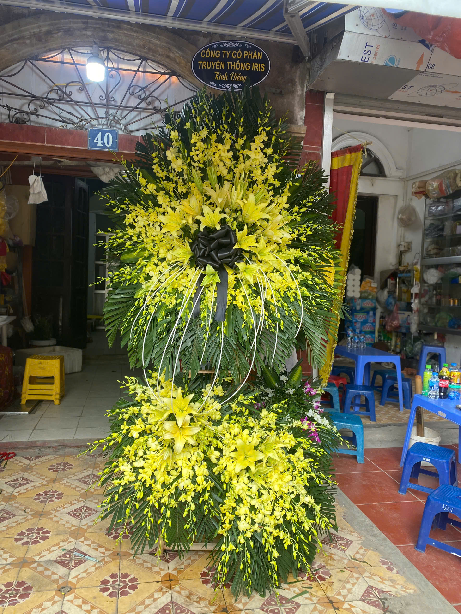 Lẵng hoa lan vàng 3 tầng to đại