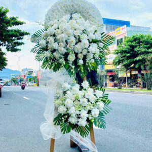 Chiều cao của vong hoa là 180cm, rộng 90cm tính cả chân.